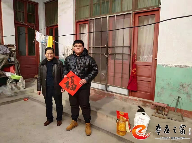 2022年1月28日,薛城區(qū)政協(xié)副主席、工商聯(lián)主席姚磊帶領(lǐng)工商聯(lián)領(lǐng)導(dǎo)班子成員分別到周營(yíng)、鄒塢、常莊等鎮(zhèn)村開展春節(jié)前“送溫暖”走訪慰問7家?guī)头鰬艋顒?dòng),為他們送去愛心企業(yè)家王興亮選購(gòu)的米、油、面。姚磊還專門送了自己書寫的《!纷执郝(lián),并向幫扶戶送上節(jié)日問候和新春祝福。