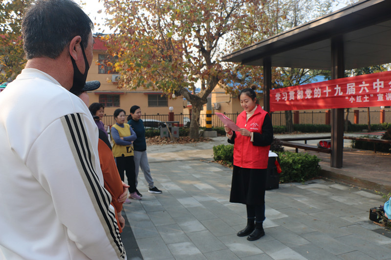 為及時(shí)傳達(dá)黨的十九屆六中全會(huì)精神,把全會(huì)精神送到千家萬戶,讓全會(huì)精神在群眾中落地生根,11月16日,龍山路街道組織開展“學(xué)習(xí)貫徹黨的十九屆六中全會(huì)精神”宣講活動(dòng);顒(dòng)中,“小紅土”宣講員親切地給社區(qū)居民們講解了中國(guó)共產(chǎn)黨百年奮斗的歷史意義和寶貴歷史經(jīng)驗(yàn),對(duì)全會(huì)精神進(jìn)行了系統(tǒng)宣講和深入解讀,通過“面對(duì)面”的家常嘮嗑式宣講,讓宣講理論變得通俗易懂,不僅深深地吸引了在場(chǎng)居民,還讓居民感受到了“聽得懂”“坐得住”“傳得開”的新思想,真正的做到讓“全會(huì)精神”潤(rùn)人心。據(jù)統(tǒng)計(jì),現(xiàn)場(chǎng)共發(fā)放《十九屆六中全會(huì)精神主要內(nèi)容》等宣傳頁200余張。